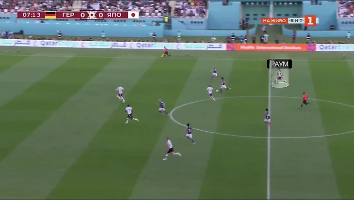 У Германии они были, а итогом стали регбийные атаки, когда мяч быстро перемещается от одного фланга к другому. Свободу в такой манере часто получал Раум – из-за схемы Японии с четверкой защитников латераль постоянно оставался один. Один из таких эпизодов завершился пенальти, с которого немцы открыли счет.