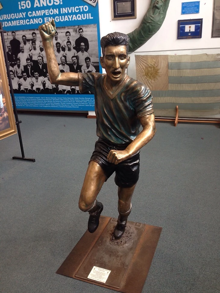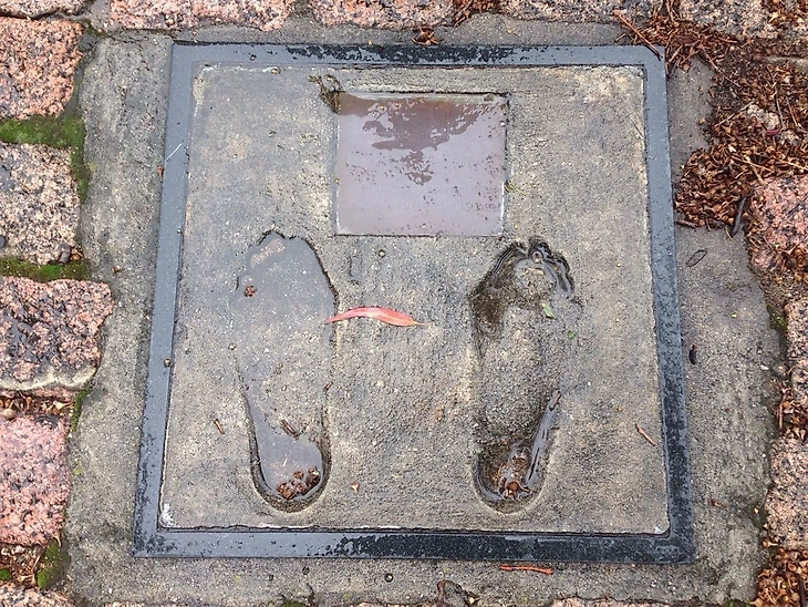 Перед монументом отпечатки ступней Альсидеса Гиджи. Именно он забил победный гол в матче против Бразилии.