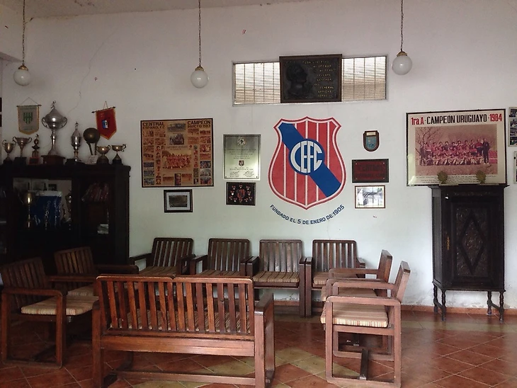 Иду дальше. Неподалеку от «Сентенарио» к друг другу прижимаются два небольших стадиона. На одном из них играет футбольный клуб «Сентраль Эспаньоль». Дверь в подтрибунное помещение открыта, вход перегораживает только решетка. Заглянув внутрь, вижу небольшой музей с историей клуба: кубки, фотографии. Одна из них гласит, что клуб становился чемпионом Уругвая в 1984 году.