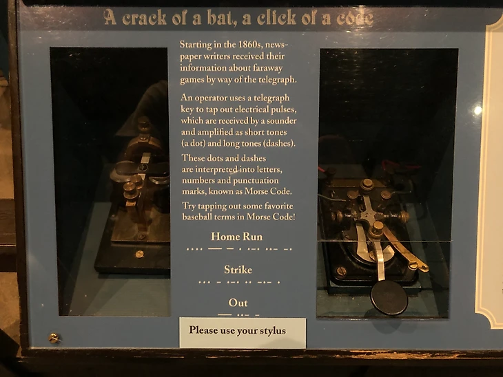 Телеграф и разработанный для бейсбола код азбуки Морзе, обозначающий хоум-ран, страйк, аут.
