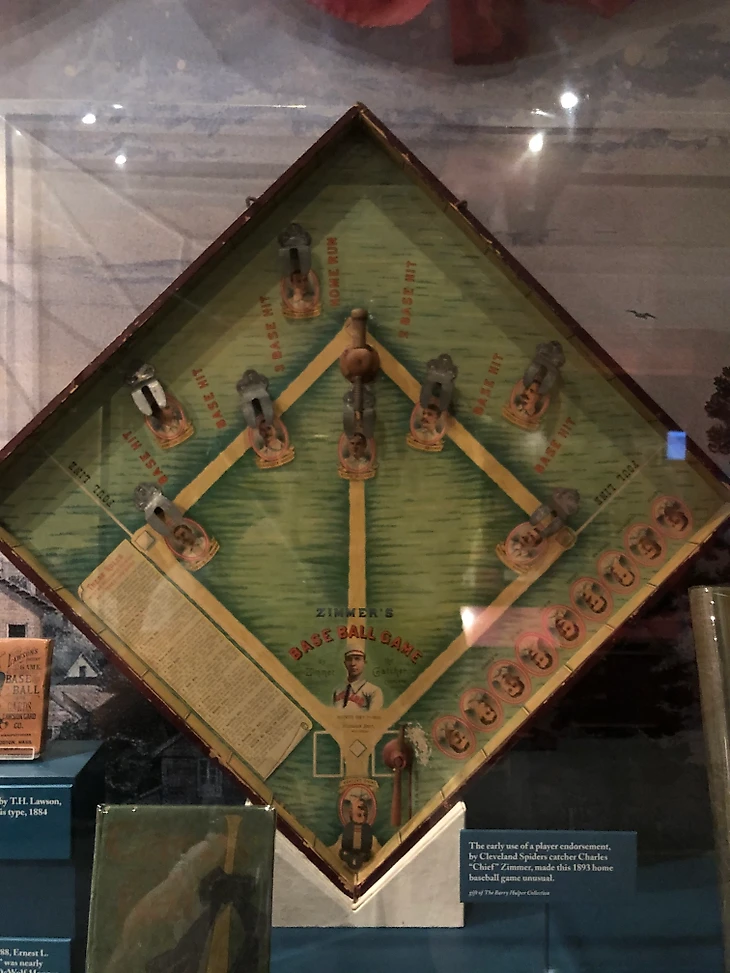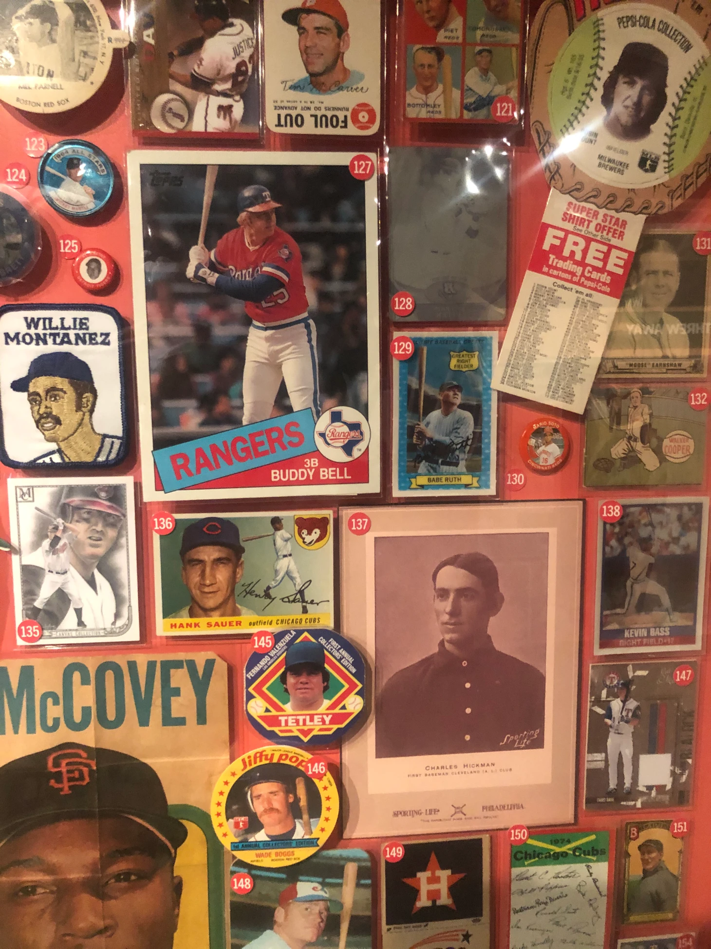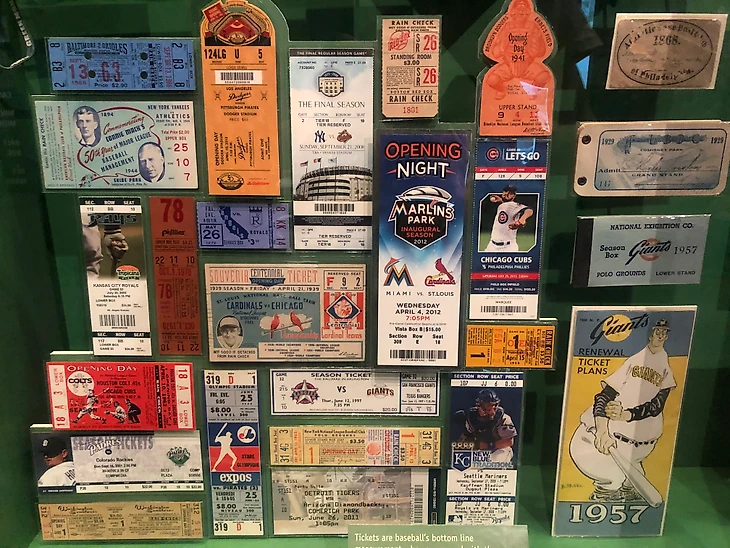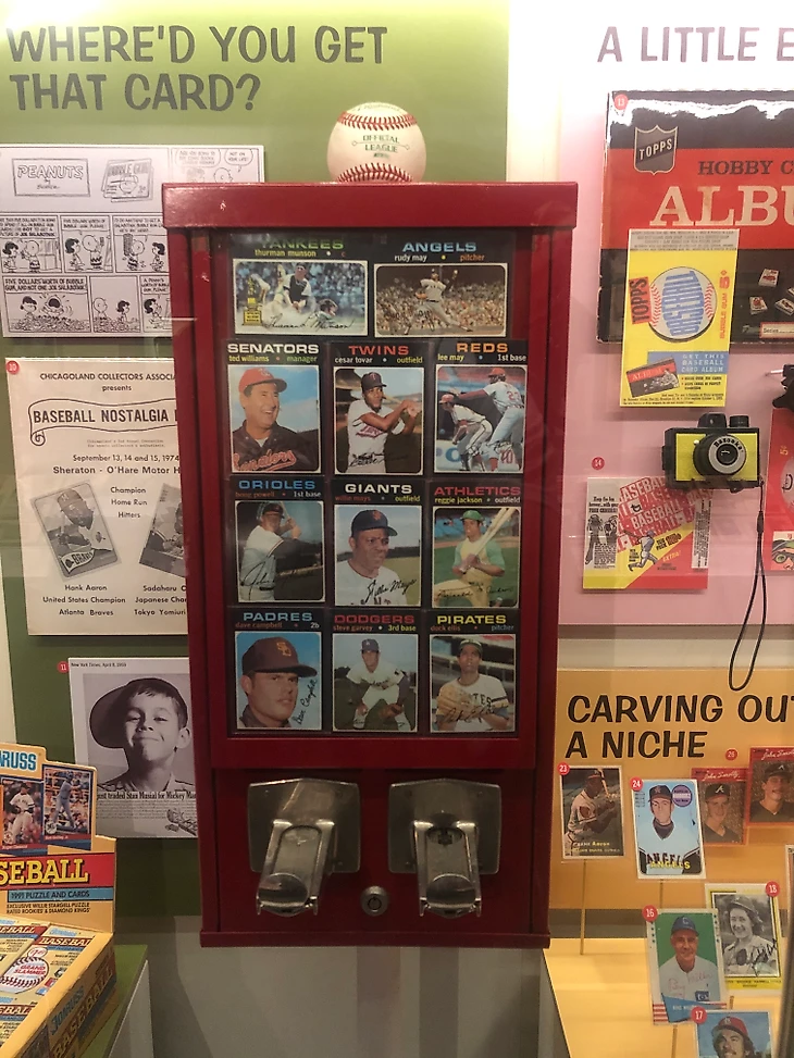 Конечно, в музее есть экспозиция, посвященная бейсбольным карточкам. Вообще-то, коллекционные карточки делают на различную тематику, но самыми популярными стали именно бейсбольные. Различные компании часто использовали их, чтобы увеличить выручку – карточки вкладывали внутрь коробок с конфетами, чипсами, пачек сигарет и жвачек. Также существовали автоматы по продаже бейсбольных карточек. Карточки стали настолько популярны, что в 1990-х их оборот достиг 1,5 миллиарда долларов.