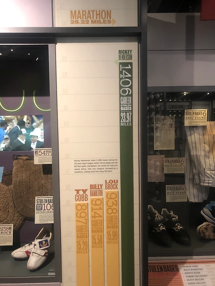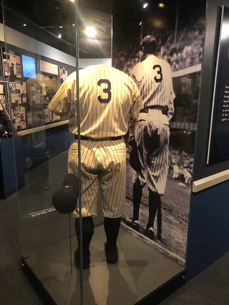 Конечно, отдельная экспозиция посвящена одному из величайших бейсболистов в истории Бэйбу Руту. Тут вы не найдете длинного описания его биографии. Основные вехи его жизни отмечены с помощью заголовок газет, цитат и различных артефактов, принадлежавших Руту: детство, начало карьеры в «Бостон Ред Сокс», продажа в «Нью Йорк Янкис» (породившая «проклятие Бамбино»), рекорд по количеству выбитых хоум-ранов, благотворительность, обнаружение рака.