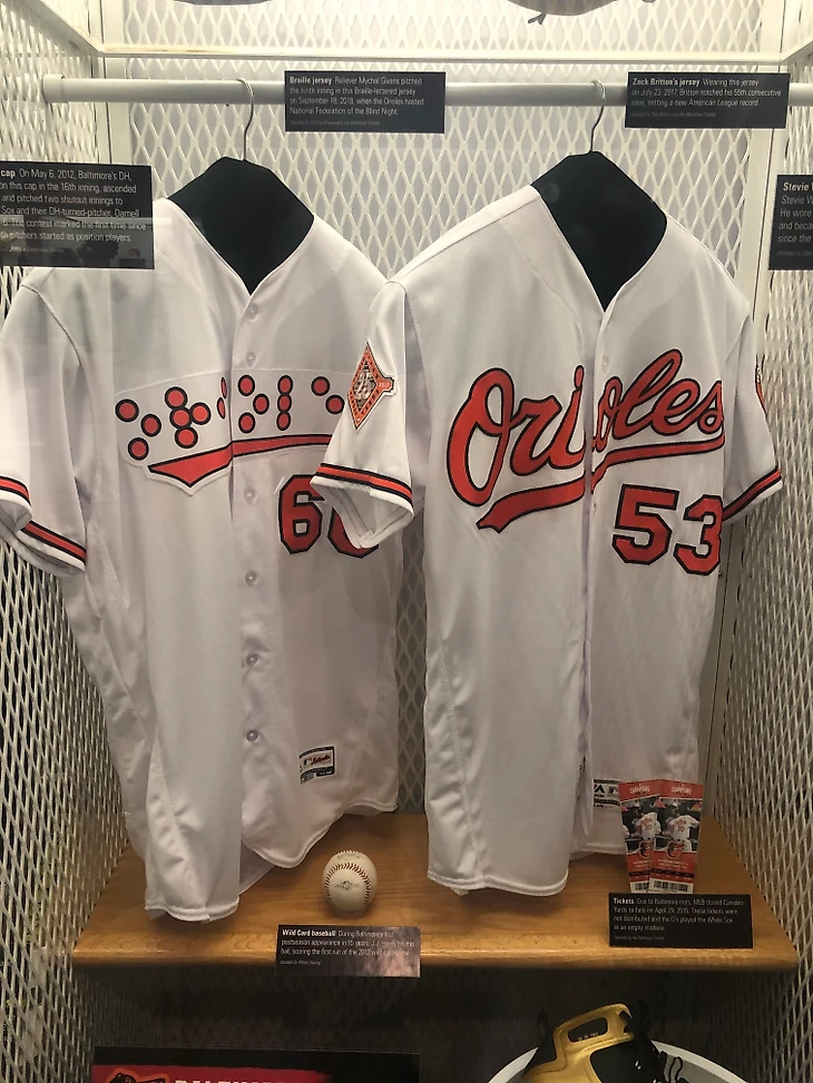 В музее представлены униформы всех клубов МЛБ. Некоторые из них довольно оригинальные. Например, форма «Балтимор Ориолс», в которой игроки клуба выступали 18 сентября 2018 года – наименование Orioles на ней, написано на языке Брайля.