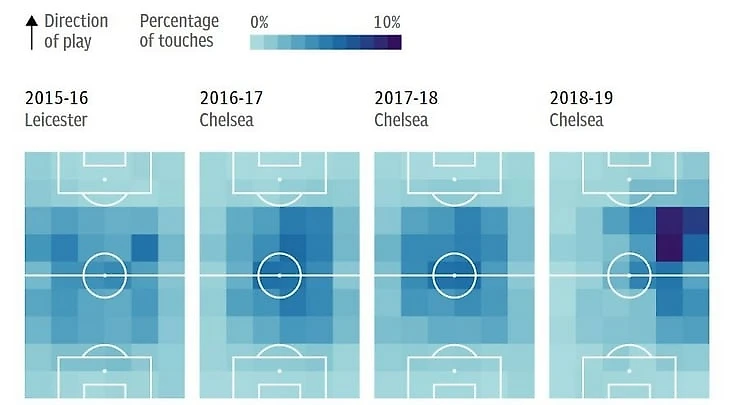 Тепловая карта Канте в каждом из предыдущих сезонов.