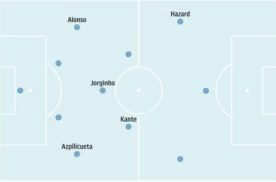 Да, у Макелеле и Жоржиньо одна позиция в одной и той же схеме, но их роли полярно различаются: один отвечал исключительно за разрушение, а другой должен быть быть умом и двигателем атак. Ровно по этой причине появление Канте в опорной зоне противоречит философии Сарри: Канте не похож на глубинного плеймейкера, так как его сильная сторона – это в первую очередь покрытие большого пространства и чтение игры в обороне.