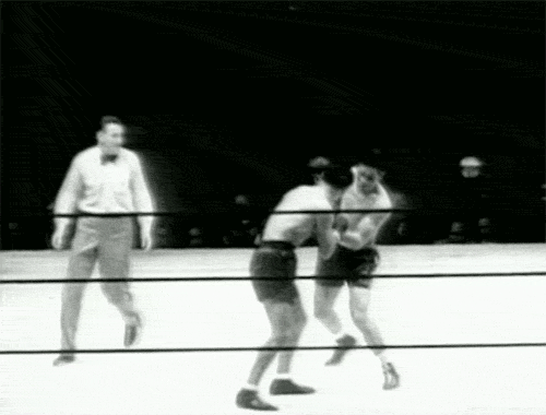 Идет первый бой, который транслируют по телевидению, легендарный Макс Бэр против молодого, но уже знаменитого Джо Луиса. В углу Макса, как всегда, поддерживает Джек Демпси. После первого раунда, Бэр возвращается в угол, избитый уже, но как всегда веселый: