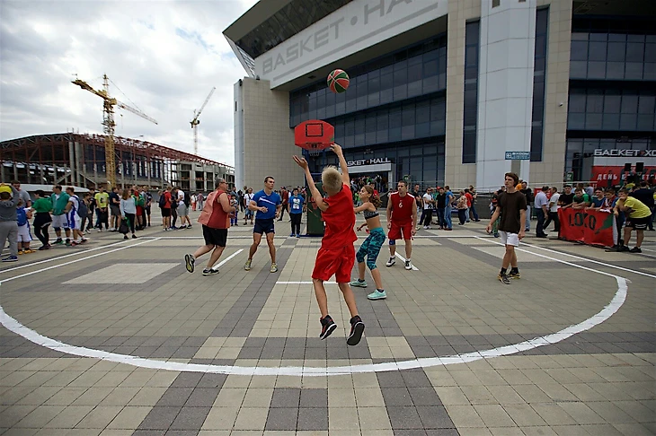 Те, что постарше, имели возможность посостязаться в настоящем баскетбольном турнире. Так как он был семейным, переодеваться пришлось и родителям.