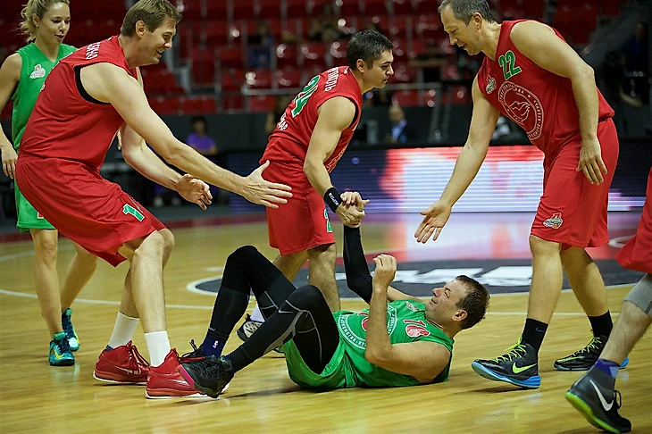 Но особенно яркими выходили дуэли между легендами отечественного баскетбола. К примеру, матч знаменитостей на один час погрузил зрителей в противостояние Захара Пашутина и Игоря Куделина.