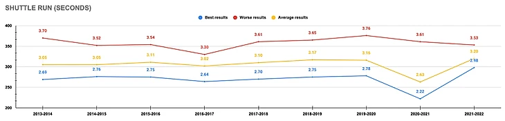 В этом посте будут описаны и проанализированы только результаты атлетических тестов с сезона-2000/01 по сезон-2021/22 включительно. В рамках исследования я проанализировал тесты и выявил динамику изменения результатов.