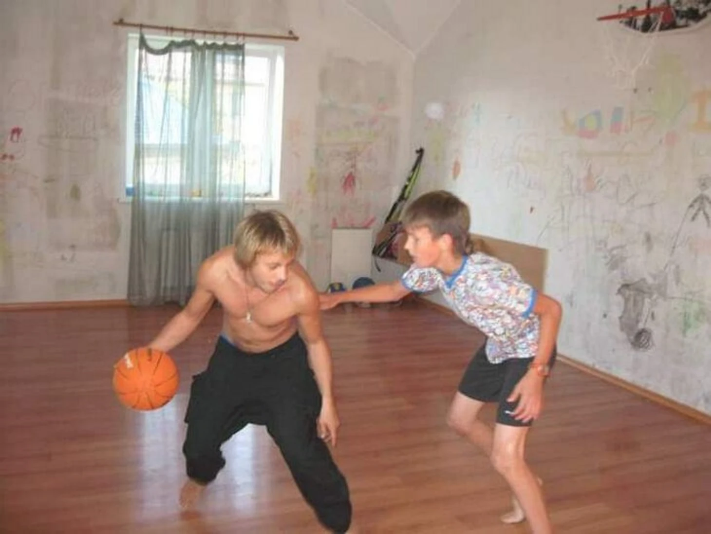Чтобы хоть как-то компенсировать нехватку занятий, Павел Руженцев договорился с директором школы в соседней деревне, чтобы после 7 часов Самсона пускали в зал побросать. Везет он сына в школу мимо этой деревни — заезжает, там Самсон тренируется, и едут дальше. А дома тоже зал был на втором этаже, и там Руженцев под музыку оттачивал дриблинг. Так они и жили.