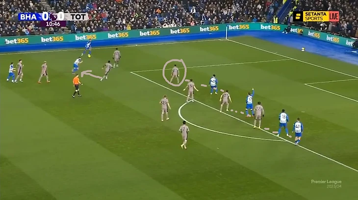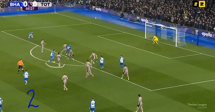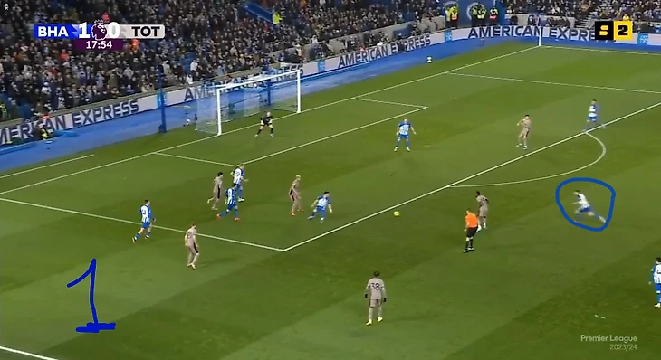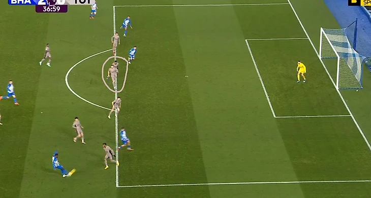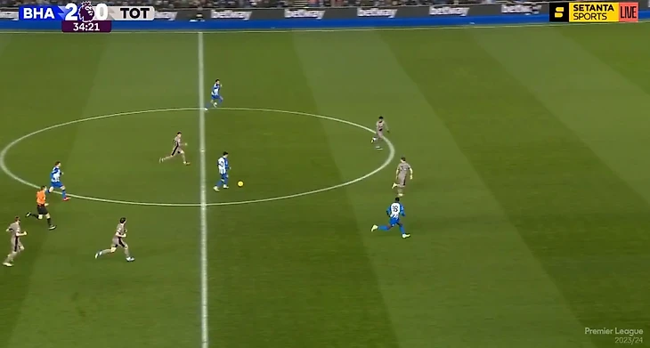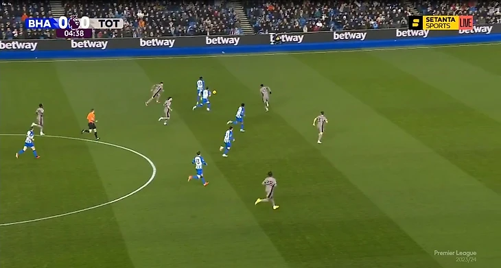 А вот применительно к ТТХ такие потери случаются слишком часто, вот просто пример на 4 минуте матча и Брайтон улетает 5 в 5, если не 5 в 4 и создает сначала голевой момент у Уэлбека, а потом в этой же атаке еще один момент у англичанина. Благо там Викарио вытворял чудеса вратарского дела, так бы гол был раньше.