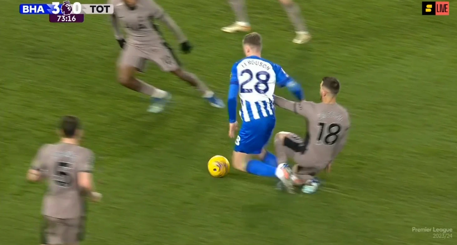 Так и закончился первый тайм. ТТХ особо ничего и не создал, зато Викарио создал несколько шедевров спасений. Что поменялось во втором тайме? С одной стороны и ничего, но с другой у ТТХ возникло 3 явных момента после «наваров» Брайтона при попытке выйти низом. Кстати очень круто, что Брайтон даже при счете 2-0 не отходил от своей философии, ну тут все зависит от тренера, давно известный факт, что Де Дзерби очень настойчив и упрям в плане тактики. Ну применительно к этому отрезку матча Брайтон повезло, не отрицаю, забей Ришарлиссон, Удогие, непонятно как бы закончился матч, но это больше проблемы ТТХ уже. Дальше произошло то, за что многие смотрят и любят футбол, не вникая во всякие тактики и моменты, про которые я тут пытаюсь растолковать. Эступинан подошел на угловой и как дал в девятку без вращения, прелесть просто. Ну и завершу тем, про что и есть этот пост. Про проблемы ТТХ. Вышел Ло Чельсо и заработал пенальти. Ну при всем уважении. Да может быть счет влиял или время, но когда человек, недавно вышедший на замену катится сзади в штрафной площади, это очень странно. Чистейший пенальти.