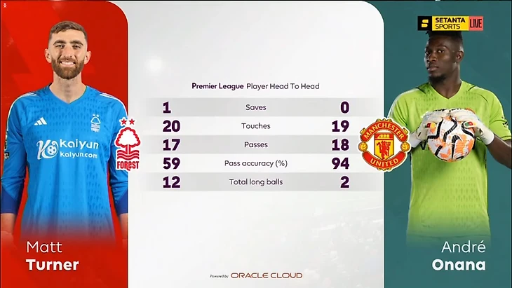 Ну вот статистика двух вратарей за первый тайм. Так Онана коснулся мяча меньше раз, чем Тернер, в чем претензия, скажете вы? Но ведь проблемка в том, что МЮ высоко прессинговал весь первый тайм, а Ноттингем от слова «совсем» отказался от прессинга.