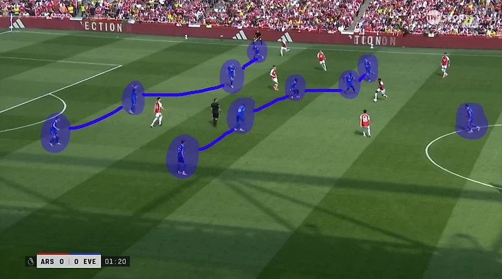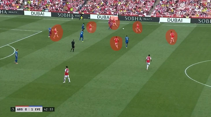 На этот раз еще и Хавертц сюда спустился, и теперь считаем игроков Эвертона против этой шестерки, правильно, их 5.