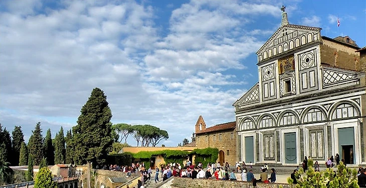 Базилика Сан-Миниато-аль-Монте возвышается над Тосканой еще с XI века. Особенно прекрасна церковь на горе в розовых лучах заходящего солнца. Впрочем, и с горы вид не хуже — весь город на ладони. Так что редкий турист откажет себе в удовольствии сюда забраться, побродить среди построек монастыря, когда-то превращенного Микеланджело в оборонительную крепость, заглянуть на старинное кладбище.