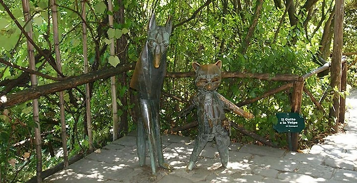 Парк Коллоди появился в 1956 году в 67 км от Флоренции, в городке Коллоди. Там есть все, что придется по душе истинному буратинолюбу: мастерская, где делают деревянных кукол, кукольные спектакли, высоченная деревянная скульптура Пиноккио, целая аллея со статуями прочих персонажей сказки и мозаичные панно, ее иллюстрирующие. А также Страна дураков и Страна развлечений, где, как мы помним, некий Господинчик готов играть с детьми до тех пор, пока они не превратятся в ослов. Есть, конечно же, харчевня, где, перекусывая, вполне можно повстречать Лису, Кота и даже Говорящего сверчка.