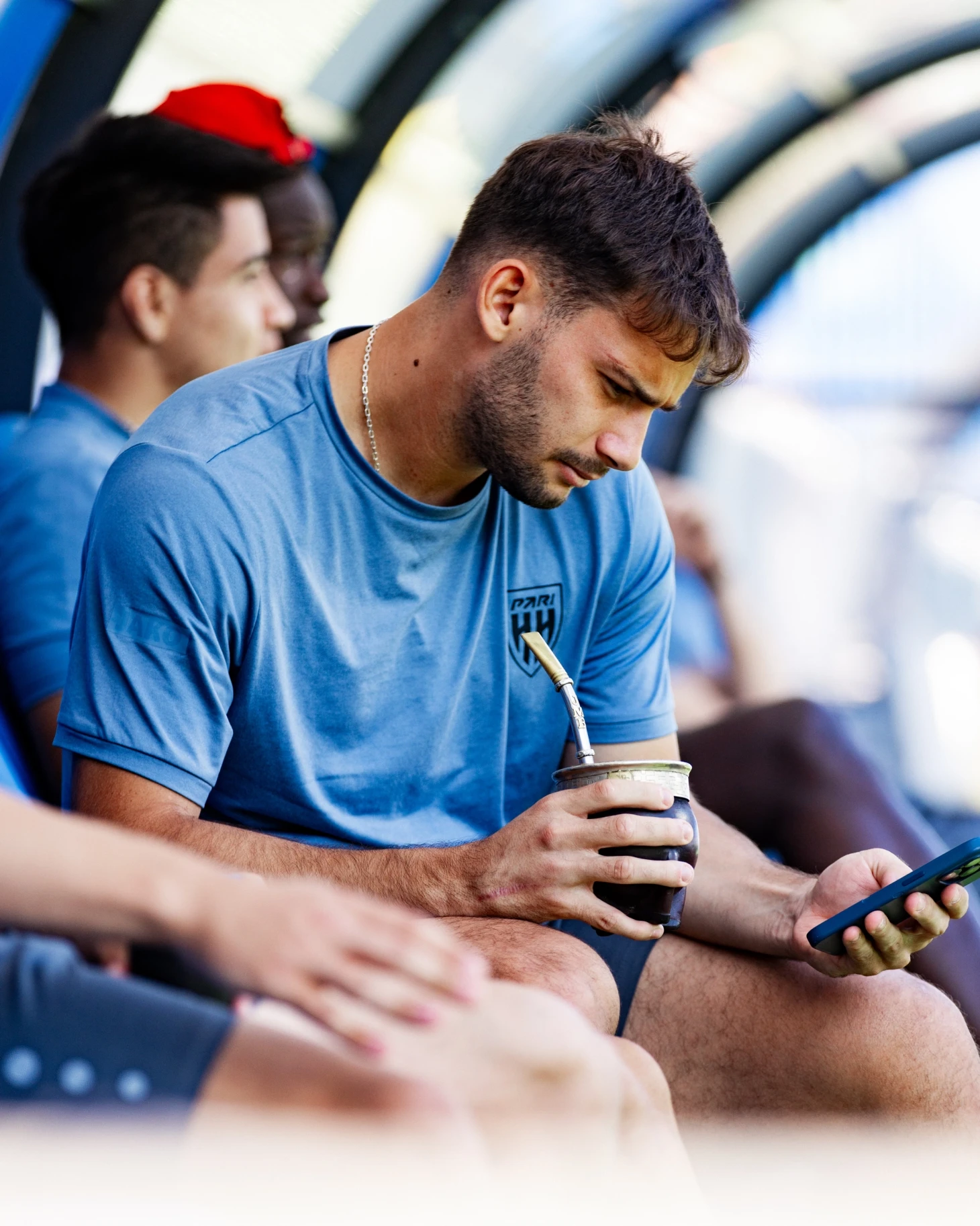 Увидев, что в атаке команда расставляется в уже привычные четыре полузащитника (где двое это так называемые мною полунападающие), стал переживать за переход в оборону. Будут успевать Тичич и Боселли? Ведь в матче с чемпионом Илич и в нападении использовал другую схему. Но после первой потери, успокоился. “Пари НН” использовал для себя гибридную схему. В атаке играли с одним нападающим и двумя помощниками, а при потере перестраивались на игру в два форварда. Боселли помогал нападающему, а Тичич отходил в пару к Калинскому. Глейзер играл чистого опорника. При таком построении латералям уже должны помогать центральные полузащитники. Что они и делали. А защитных навыков у них явно больше, чем у вингеров.