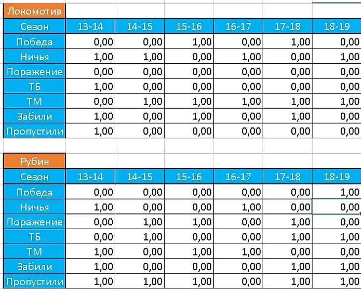 Это важно, так как это старт сезона и команды плюс-минус в равных условиях.Приложил таблицу, с результатами команд за последние 6 сезонов.Значения: 1 - произошла событие.0 - событие не произошло.