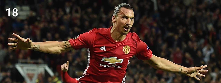 18. Златан Ибрагимович («Манчестер Юнайтед», сборная Швеции)
