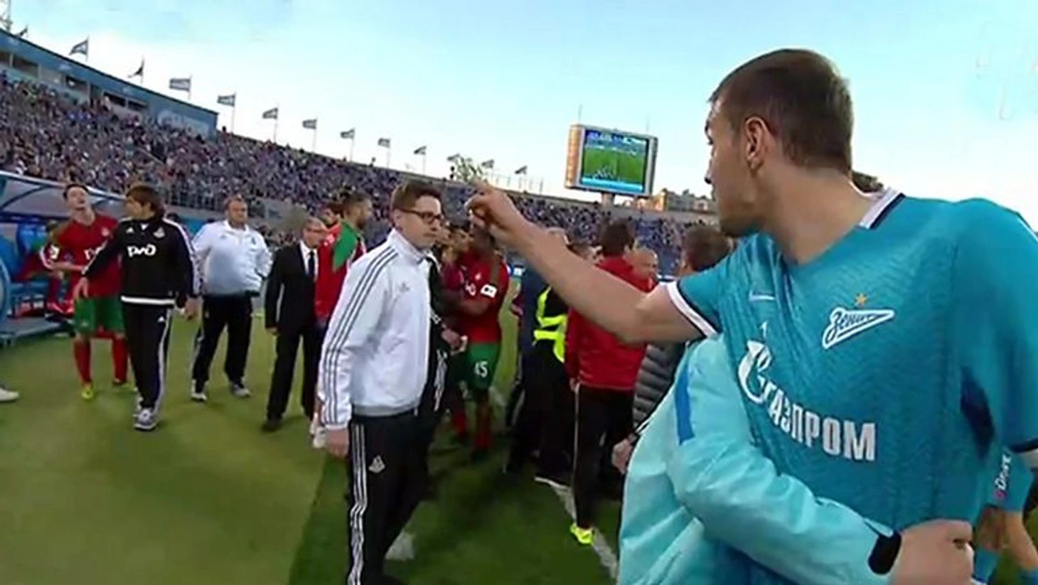 • В добавленное время произошел инцидент, важность которого мы осознали только сегодня. Железнодорожники тактически сфолили в центре поля. Алексей Миранчук откатил мяч в зону, где был фол, на что петербуржцы крайне возмутились. Больше всех негодовал Артем Дзюба.