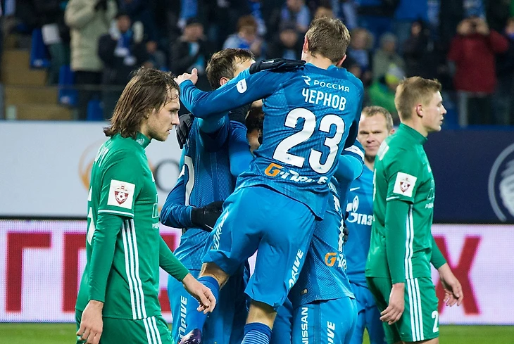 Единственный гол хозяева забили на 26-й минуте. Чернов навесил в штрафную, где Дзюба головой сбросил на Кокорина. Александр обработал мяч и катнул его мимо Коченкова (хотя игрока накрывали три человека). В концовке первого тайма свой момент получил Анюков. После прострела Чернова Кокорин отдает мяч свободному защитнику "Зенита", который отправляет его точно в штангу.