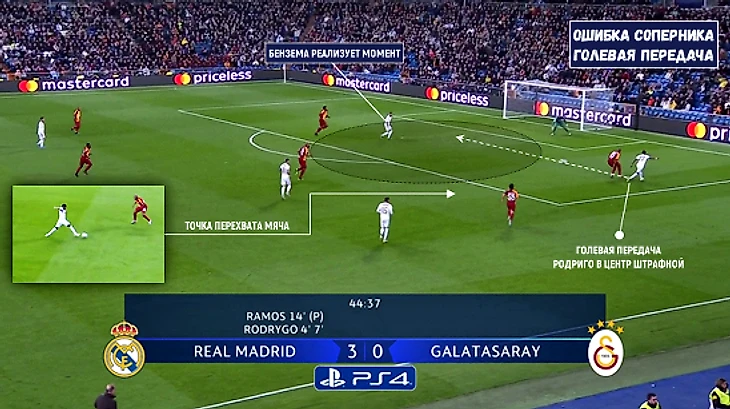 Да, гол в итоге забьет Кроос, но за минуту до этого в аналогичном эпизоде передачу Бензема замкнул именно Родриго. Пример из той же серии, но с другим действующими лицами.