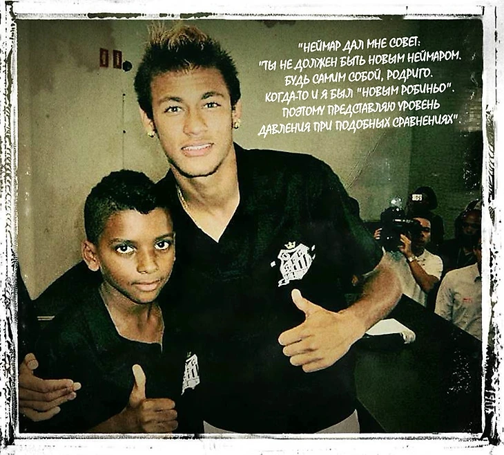Противником Родриго в дебютной игре за первую команду «Сантоса» выступил «Атлетико Минейро» и, в том числе, Робиньо – один из любимых футболистов нашего героя.