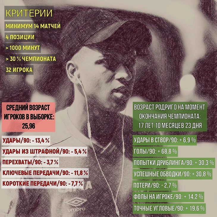 Необходимо сразу оговориться: глобальных выводов по столь короткому отрезку делать не стоит, стабильность на дистанции – основное мерило прогресса любого молодого исполнителя. Наиграть много минут Родриго пока не успел, да и об уровне оппозиции забывать не стоит. Но попробовать трезво взглянуть на стартовый отрезок юного бразильца в клубе все-таки стоит.