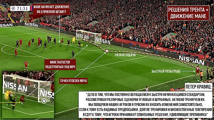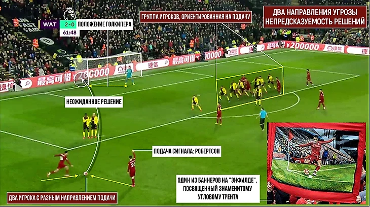 Заключительный эпизод, который иллюстрирует возможности «Ливерпуля» подавать мяч со штрафного по разным траекториям, и очередное доказательство того, что Трент может принимать нешаблонные решения: