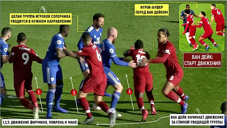 Заслоны под Ван Дейка – вещь системная. Вопрос лишь в партнере, который ставит заслон, и в том, с какой стороны защитник «Ливерпуля» огибает группу футболистов: