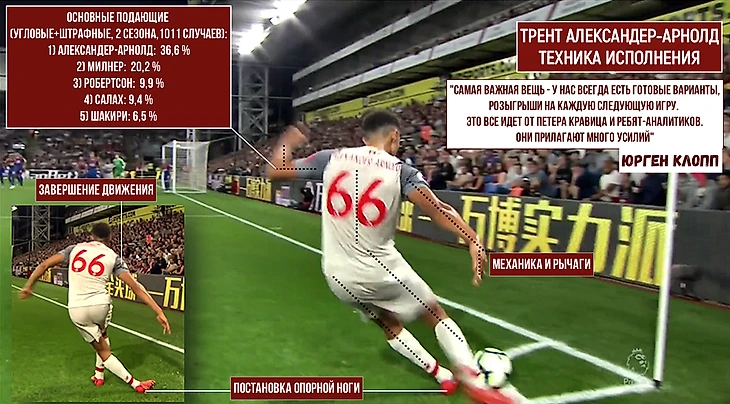 Движение в штрафной – вещь важная, но основополагающий элемент – это точность и разнообразный арсенал подач. С этой точки зрения наличие в команде ряда отличных подающих упрощает задачу. В первую очередь – это Трент Александер-Арнолд: