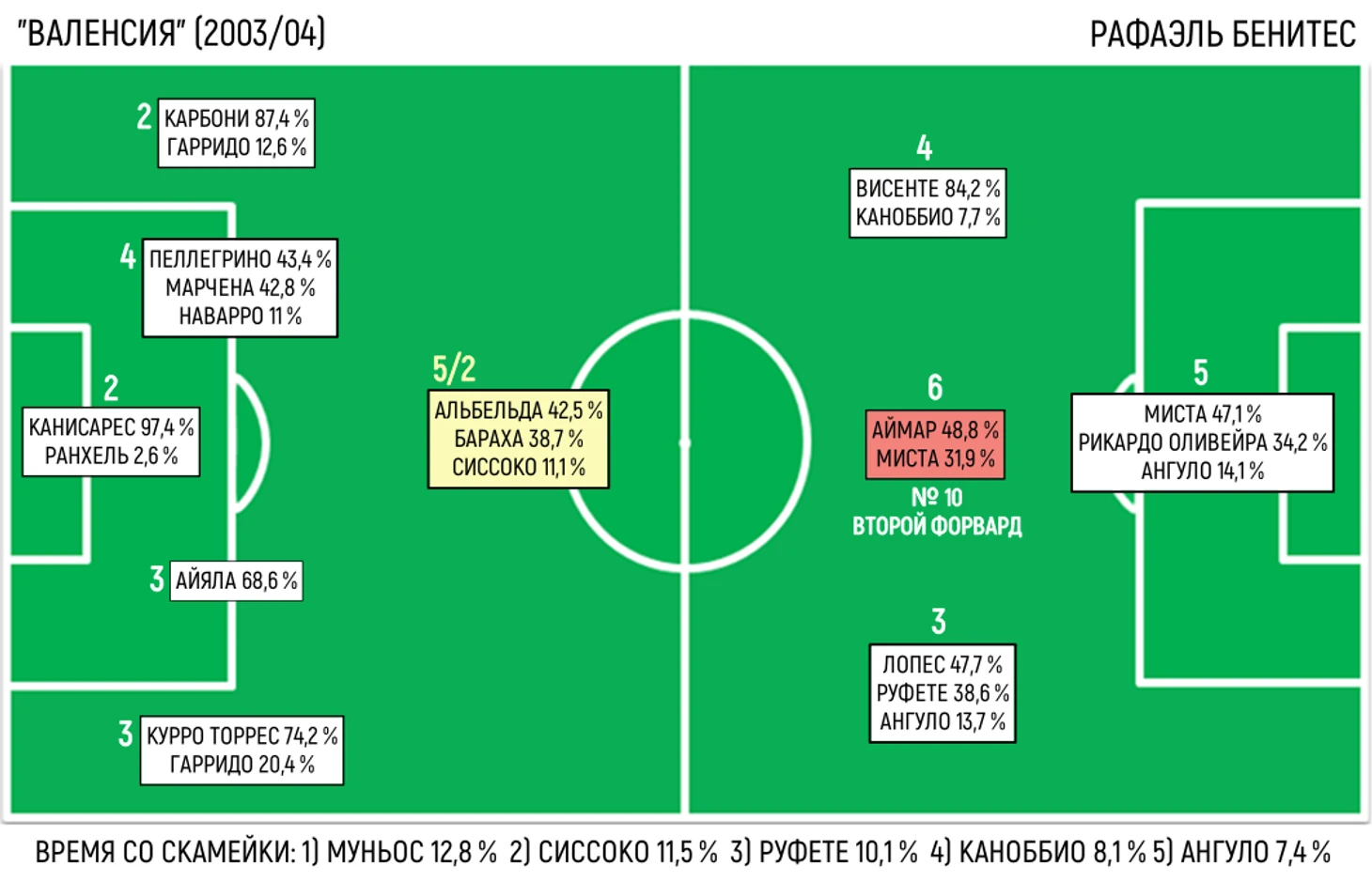 Фланги – скорость и отвага той «Валенсии». К сожалению, именно в этот период Пабло начал сталкиваться с возрастающим количеством травм. Аналогичное распределение игрового времени по второму чемпионскому сезону: