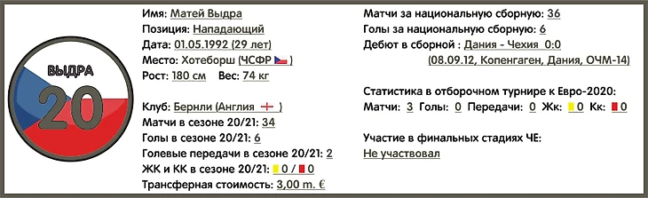 Статистическое превью сборной Чехии от блога «Топ-7 Матчей Недели»