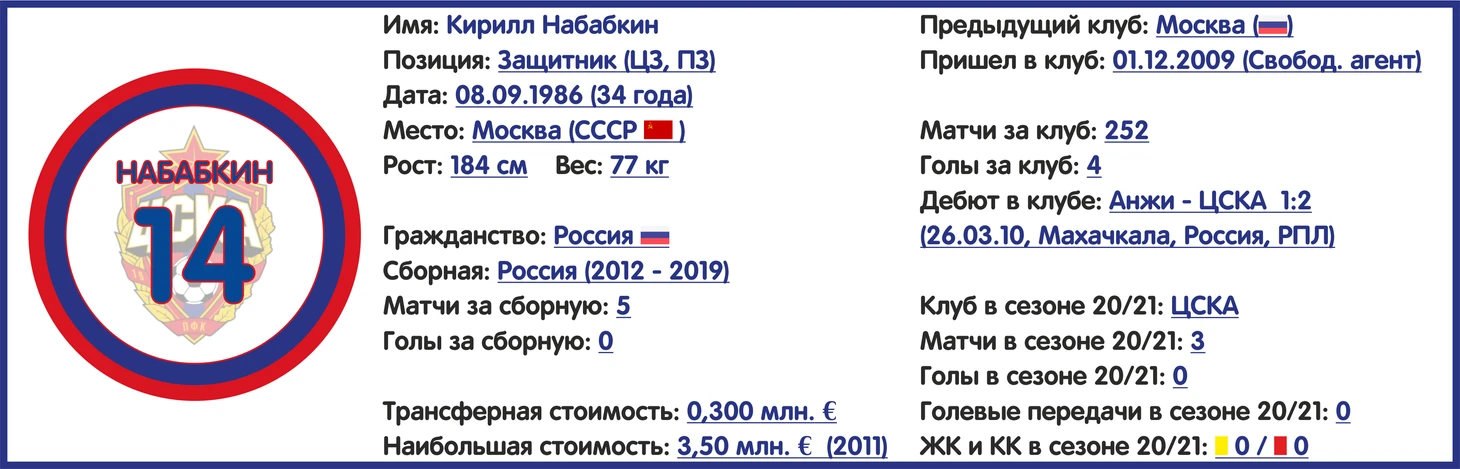 Помимо этого клуб решил ещё на один сезон переподписать своего ветерана Кирилла Набабкина, который может сыграть как в центре, так и на правой бровке, ну и помимо этого все же остался в команде молодой Наир Тикнизян, которого в межсезонье активно сватали в другой московский клуб «Локомотив».
