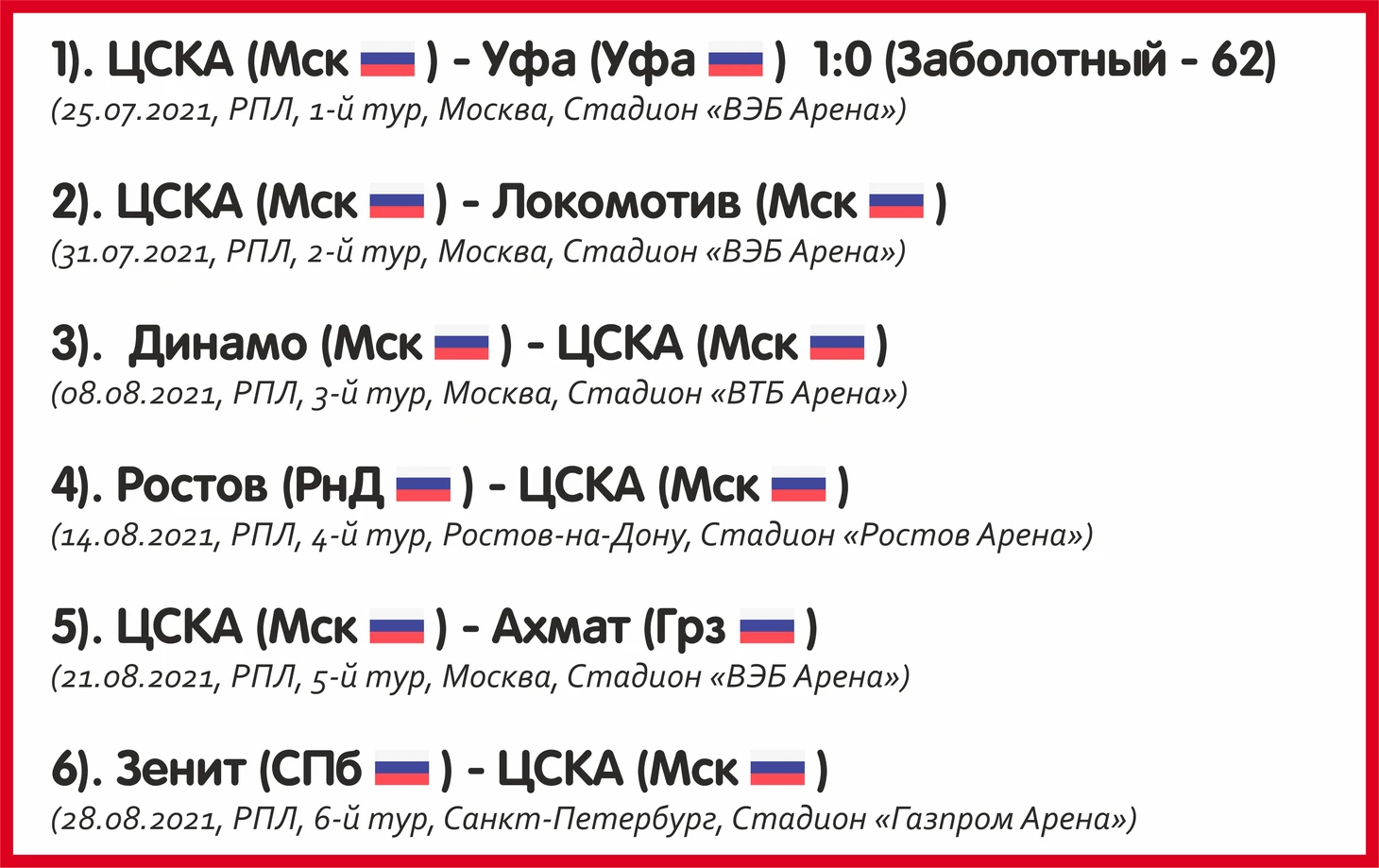 Статистическое превью ПФК «ЦСКА» от блога «Топ-7 Матчей Недели»