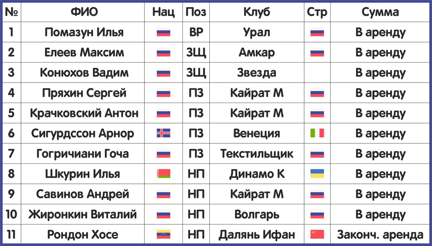 Из последних трансферных новостей нужно упомянуть и об уходе в итальянскую Венецию» «исландского легионера клуба Арнора Сигурдссона (тоже аренда, без права выкупа).
