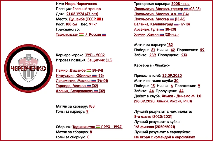 В прошлом сезоне вернувшиеся после 11-летнего перерыва «Химки» удивили многих, причем ели на старте сезоне с большим знаком минус (команда на старте турнира не выиграла ни одного из 8 стартовых туров, проиграв в 5 из них, включая позорный матч с «Краснодаром» - 2:7), обосновавшись на последней строчке в турнирной таблице, а затем и с жирным знаком плюс, ведь после прихода Игоря Черевченко на пост главного тренера (клуб выиграл московского «Динамо» в дебютной же встрече наставника) команда буквально преобразилась до неузнаваемости, выдала мощнейшую серию из 10 матчей без поражений (включающую аж 8 побед) и по итогу сезоне заняла высокое 8-е место в таблице, что стало лучшим результатом в истории клуба.