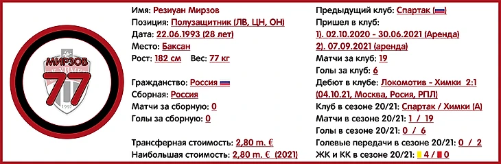 Еще один сезон в команде проведет и отлично зарекомендовавший себя здесь в прошлом сезоне Резиуан Мирзов (клуб смог договориться об еще одной годичной аренде со «Спартаком»).
