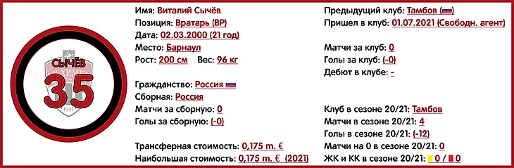Подменить его в случае необходимости может либо опытный Егор Генералов (28 лет), либо же только перешедший из «Тамбова» 21-летний Виталий Сычев.