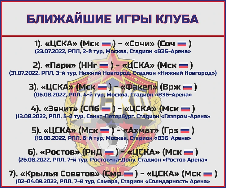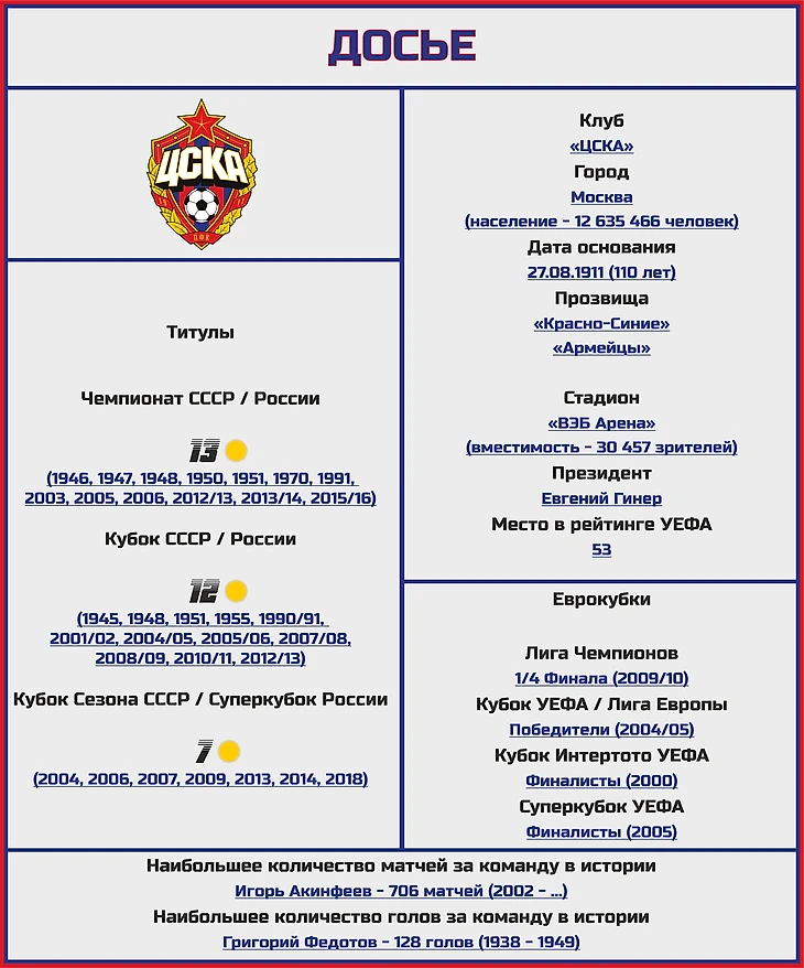 Статистическое превью ПФК «ЦСКА» от блога «Топ-7 Матчей Недели»