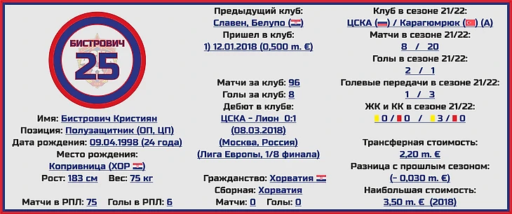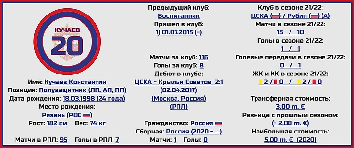 • Возможно нахождение этого игрока в списке главных звёзд несколько преждевременно, однако на мой взгляд именно он должен стать одной из ключевых фигур в построении игры всего «ЦСКА», особенно его игры в атаке.