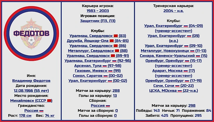 • Владимир Федотов является одним из немногих футбольных  людей, кто смог выиграть Первый дивизион и как игрок, и как тренер.