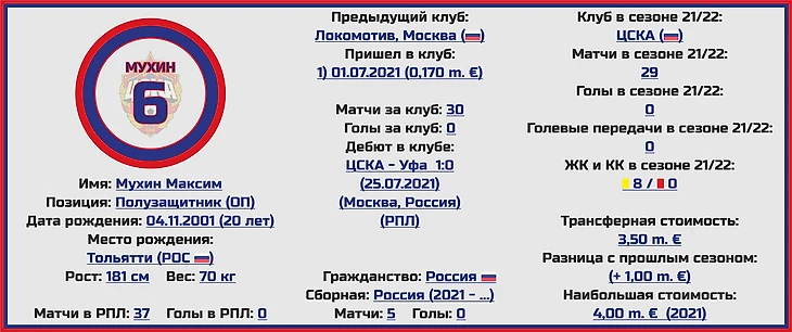 • Молодой опорный полузащитник Максим Мухин буквально ураганом ворвался в российский футбол в сезоне 2020/2021 в основу московского «Локомотива».