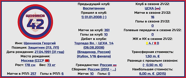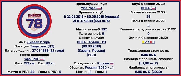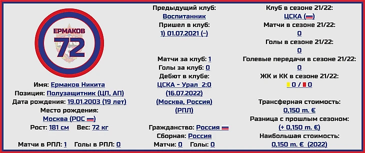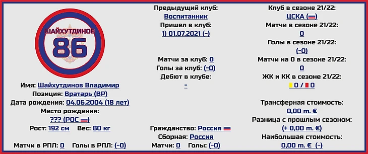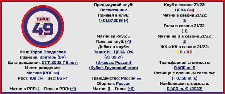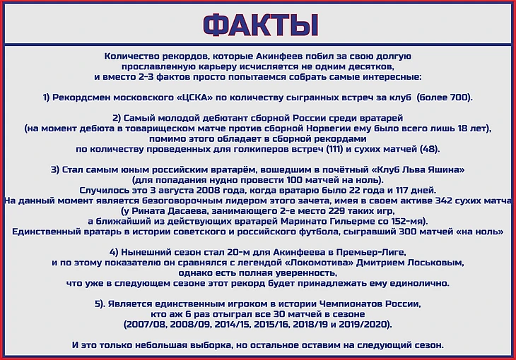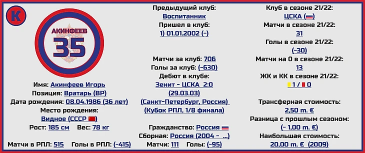 • Дебютировал многолетний будущий страж ворот «красно-синих» за команду еще 20 лет назад (в матче Кубка РПЛ против «Зенита», будучи 16-летним юниором на тот момент), проведя с тех пор более 700 матчей за «армейский коллектив во всех турнирах.