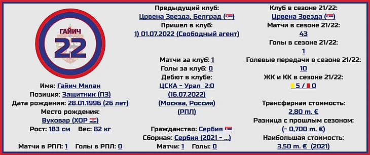 Чемпионат России. РПЛ. Сезон 2022/2023. ПФК «ЦСКА»: состав, статистика, исторические факты и многое другое
