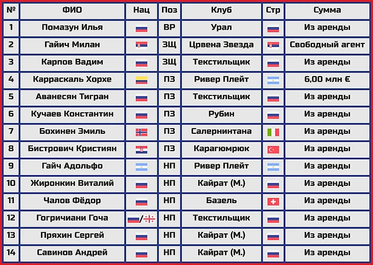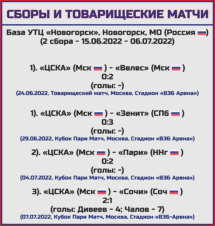 • Помимо этого из аренд вернулись и такие игроки как Вадим Карпов, Александр Кучаев, Адольф Гайч и Кристиян Бистрович (хотя двое последних далеко не факт, что в итоге останутся в России), которые рассчитывают в этом сезоне бороться за основу «ЦСКА».