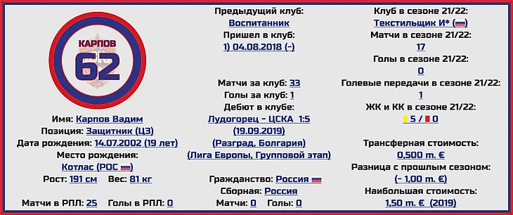 • В планы Владимира Федотова этот молодой защитник явно входит, какое-то игровое время он точно получит, а воспользуется ли он шансом побороться за место в основе «армейского» клуба зависит сейчас в основном только от него.