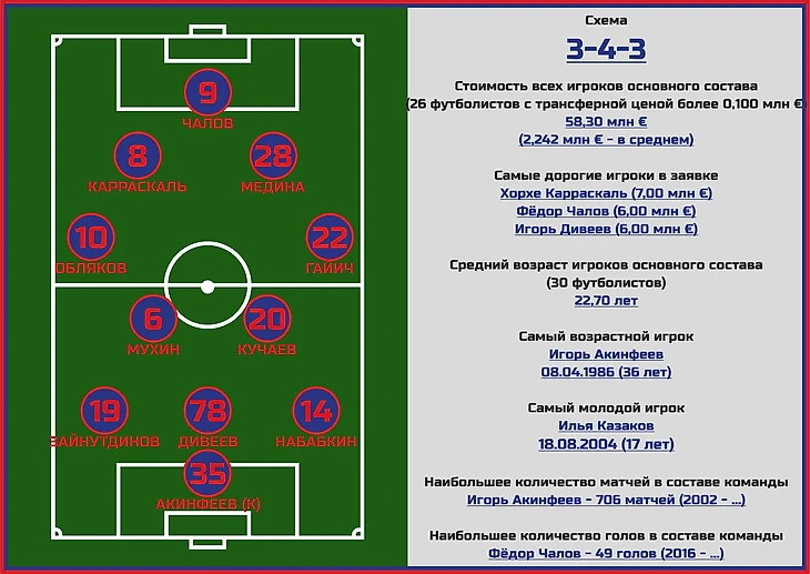 • В нападении основным пока что видится поигравший в прошлом сезоне за швейцарский «Базель» Фёдор Чалов, который и вышел с первых минут в матче против «Урала».
