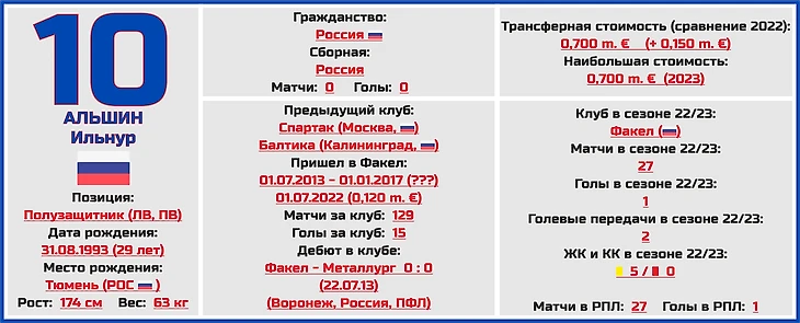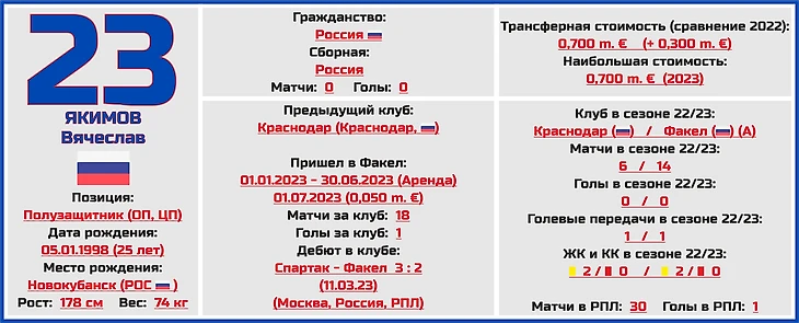 Кстати в «Факел» он приходил дважды (первый раз играл здесь в сезоне 2018/19, когда команда выступала еще в ФНЛ (сейчас Первая Лига), а второй раз присоединился к клубу уже летом 2022).
