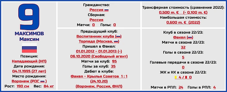 Правда еще зимой был приглашен в Воронеж нападающий Евгений Марков (из тульского «Арсенала»), по-прежнему в команде хоть и достаточно мало забивающий, но крайне полезный в атаке Хызыр Аппаев, плюс есть молодой Матвей Ивахнов, который должен уже начинать показывать себя на взрослом уровне, был куплен Александр Долгов (у подмосковных «Химок»), ну и все ждут что Максим Максимов наконец-то покажет себя и на уровне Премьер-Лиги (лучший снайпер команды сезона 2021/22 - 22 гола).